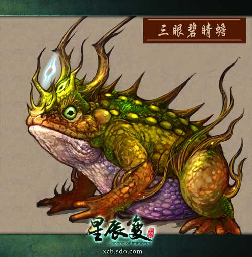 威名赫赫,大名鼎鼎,臭名昭著,恶名远扬的三眼老妖,即三眼碧睛蟾,海底世界谁人不知,哪个不晓?邪恶的第三只眼是它的标志,女性玩家估计不会太喜欢,男性玩家可以抓来吓唬小朋友。
