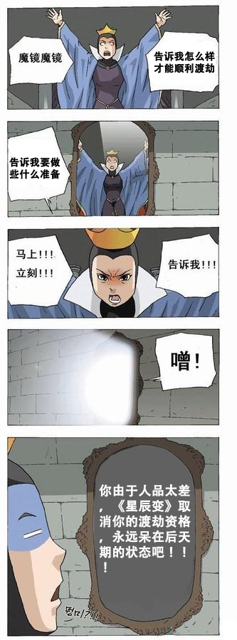 渡劫前一定要多多益善,这样你的RP才是有保证啊!否则会像下面这幅漫画一样,还没开始就已注定了失败!杯具~