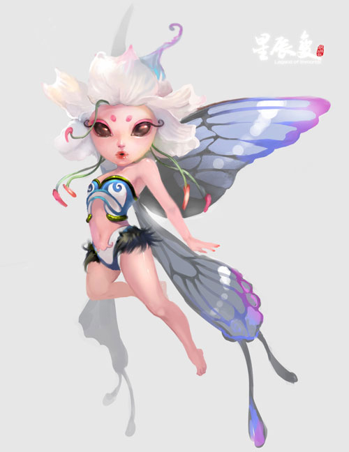 蝶精,又称花蝴蝶。大大的眼睛和斑斓的翅膀,最重要的是,虽然小巧却尽显玲珑身段,惹人怜爱。