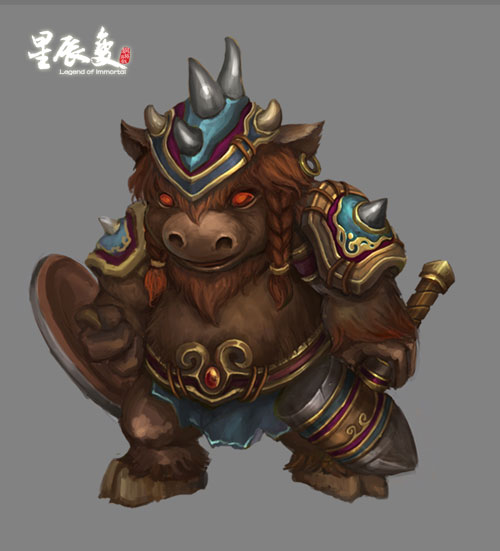 蛮牛妖,又称牛牛!力量超级强悍,是绝对的肉盾加战场先锋!右手盾牌,左手大锤!气势逼人!