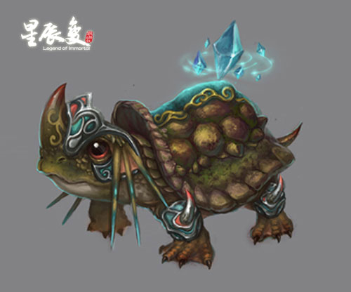 独角玄龟,又叫小龟,不要搞错,它不是生长在海底的,它是生长在陆地上的,一看就知道防御力惊人,是作战的好伙伴。