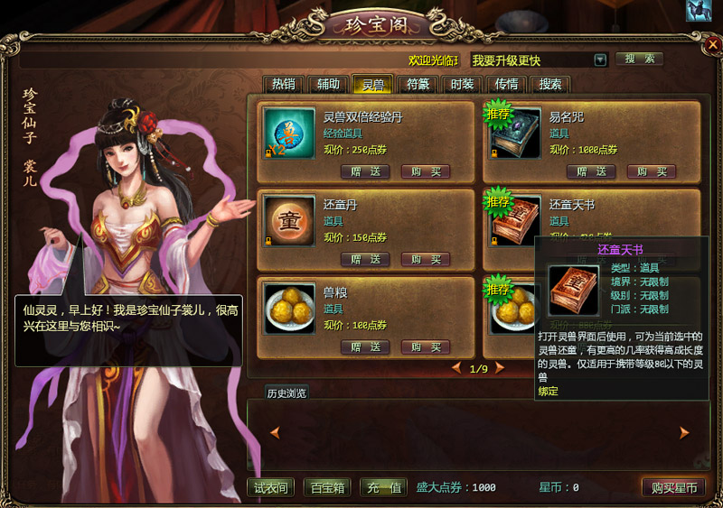 灵兽技能:灵兽技能分主动和被动两种,有些宝宝在捉到时就自带技能,这是比较幸运的。在参与活动挖宝藏的时候也有机会得到灵兽技能书。总之一个极品宝宝,没点技能,怎么出去混啊?另外珍宝阁中也有全系列的灵兽技能出售。