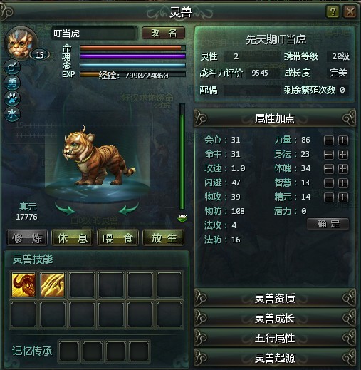 看下面这只叮当虎,就是传说中超完美的双技能极品灵兽。羡慕吧哈哈!