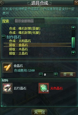 合成:土灵石 1 2500 土晶石×12 无色晶石×20