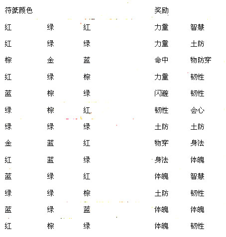 很容易看出奖励的第一条和前面两个相邻的符篆相关,第二条和后面两个相邻的符篆相关。奖励只和符篆颜色有关系。