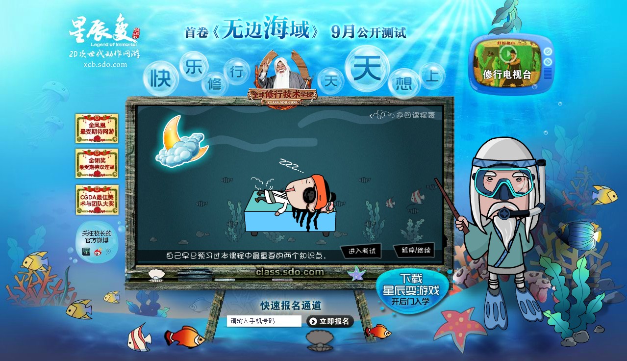 9月开学季来临,天南海北的学子们陆陆续续回到学校,而《星辰变》旗下全球修行学校也已经正式开学。9月6日,全球修行学校(class.sdo.com)首堂正式课程《海洋地理学》正式开讲,为广大修行者们传授《星辰变》即将上线的大型新版本《星辰变首卷.无边海域》修行秘技,用爆笑的授课方式培养新一批熟练掌握海底修行技能的修行者。赶快跟随《海洋地理学》,一起去探寻无边海域的玄奇世界吧。