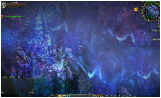 时而如宝石般碧蓝,时而又绿波荡漾!无边海域的海底世界不仅加重了中国风的笔墨色彩,也用3D渲染进一步增强了海底水纹和气泡的表现力!而海底水草的浪漫飘荡也让大家放佛置于真实瑰丽的海底世界中!不同景致不同灯光的处理,更让海底世界透露出灵气逼人,放佛处处都有奇珍异宝,等待大家前去采掘!