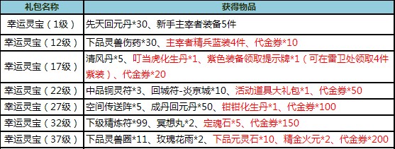 所有参加《星辰变》公测的玩家,首次上线即可获得系统送出的幸运灵宝!当等级到达1级、12级、17级、22级、27级、32级和37级可开启不同等级的幸运灵宝,有机会获得价值50万金的代金券(可在公测大使萧真处兑换各种道具)、紫色装备领取提示牌(可在炎京城雷卫处领取四件紫装)、灵兽化生丹(使用后可获得稀有灵兽)等各种丰厚奖励!免费,给力,人人都有,上线就领!