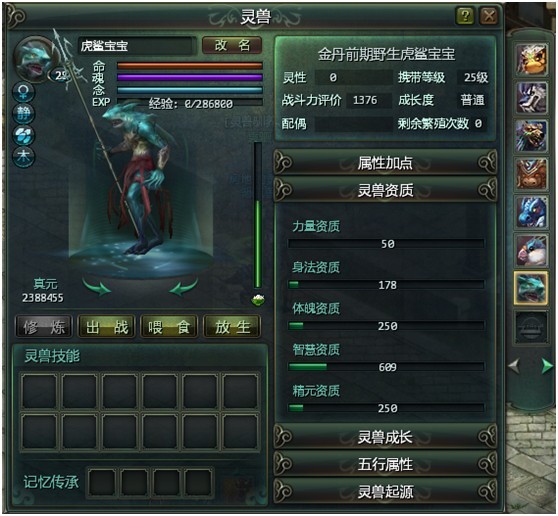 灵性:灵性的提高可提升灵兽的资质。