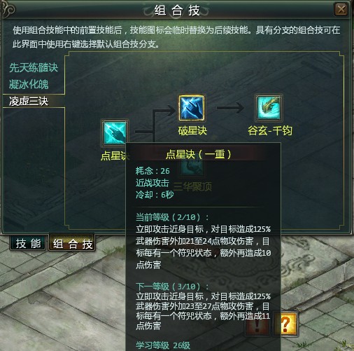除了凌虚三诀(清虚)组合技的连续伤害加成提升之外,还有另外一串组合技也在本次调整范围内。冰刃、凝水-霜华和幽泉-霜华这三大技能的武器伤害也提升了5%,如果连发的话,其最终效果同样非比寻常。PK时,一套组合技丢出来,奶妈们的暴力值将大幅度提高。