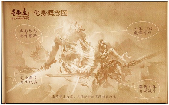 化身的传说在潜龙大陆上传得沸沸扬扬,而化身究竟是什么样子呢?相信每一位星迷都对这个问题有着极高的兴趣。自七叔在论坛爆料后,又有资深玩家爆出《星辰变》化身概念图,现在小编就带大家一起简单解读一下这幅图吧。通过图片可以看出,化身将作为独立的作战单位存在,最有可能的情况就是化身会跟随主体自动攻击;另外,通过画面我们还可以看到化身或将拥有1.5倍主体的外形,并且以虚影悬浮的形态存在,手持霸气双刀,整个形象十分彪悍。在图中小编已经做了适当注明,当然,图中所注明的猜测仅是小编一家之言,至于是否属实,还有待官方证实了。